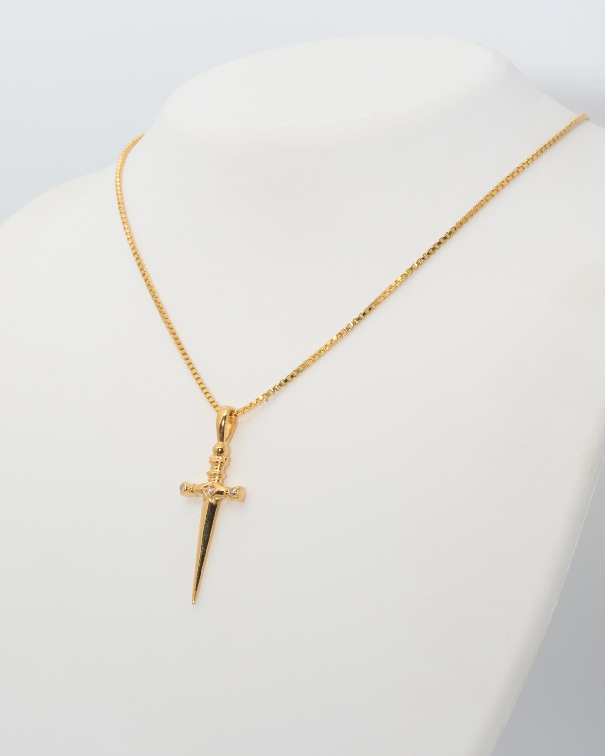 Diamond Sword Necklace with 18" Adjustable Chain in 14K Gold Vermeil