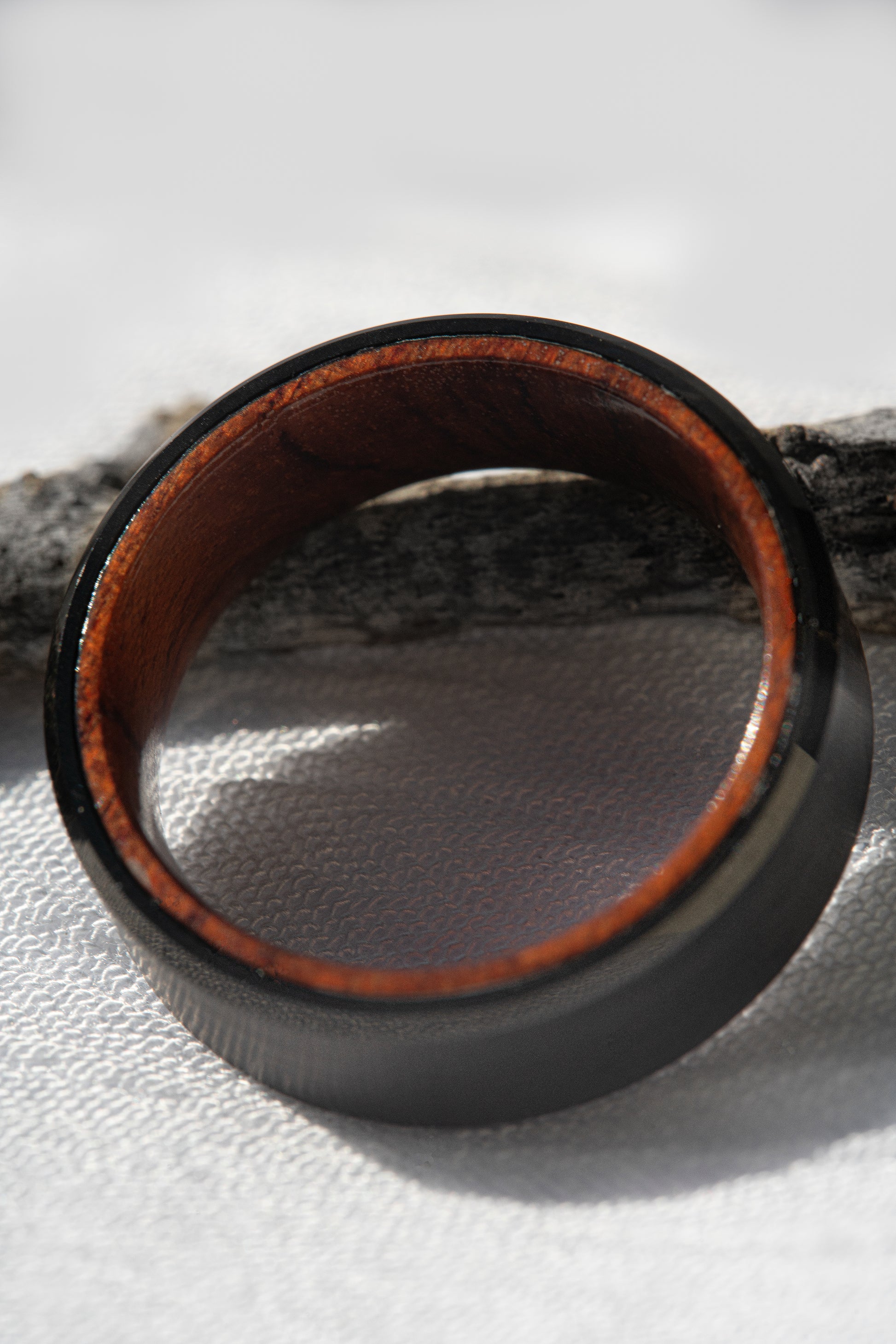 8 mm Wide African Sapele Mahogany Sleeve in Black Plated Tungsten Band at a Size 11