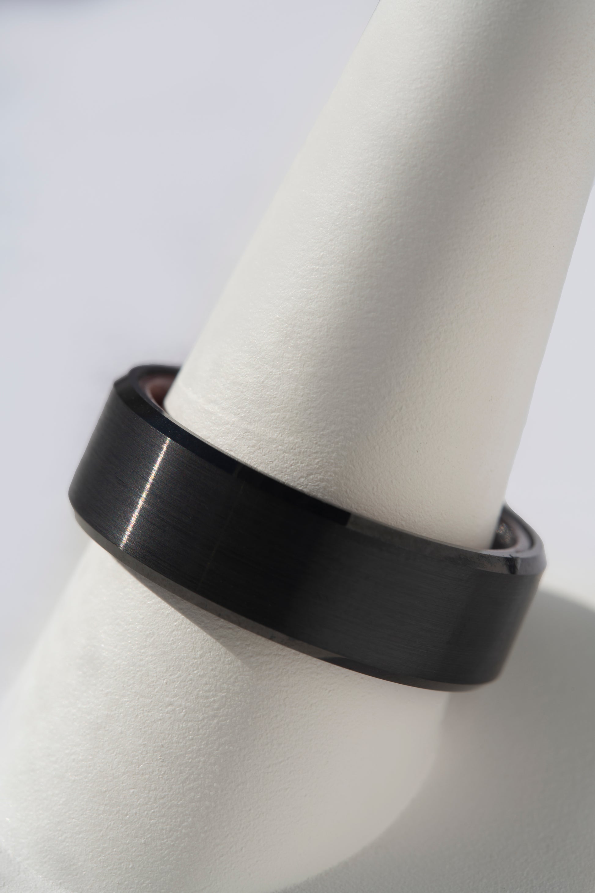 Discover the perfect blend of style and comfort with our 8 mm Wide African Sapele Mahogany Sleeve in Black Plated Tungsten Band. The satin exterior adds a sleek touch, while the soft wooden interior band ensures a comfortable fit. Available in size 11. This ring can be ordered in alternative sizes.
