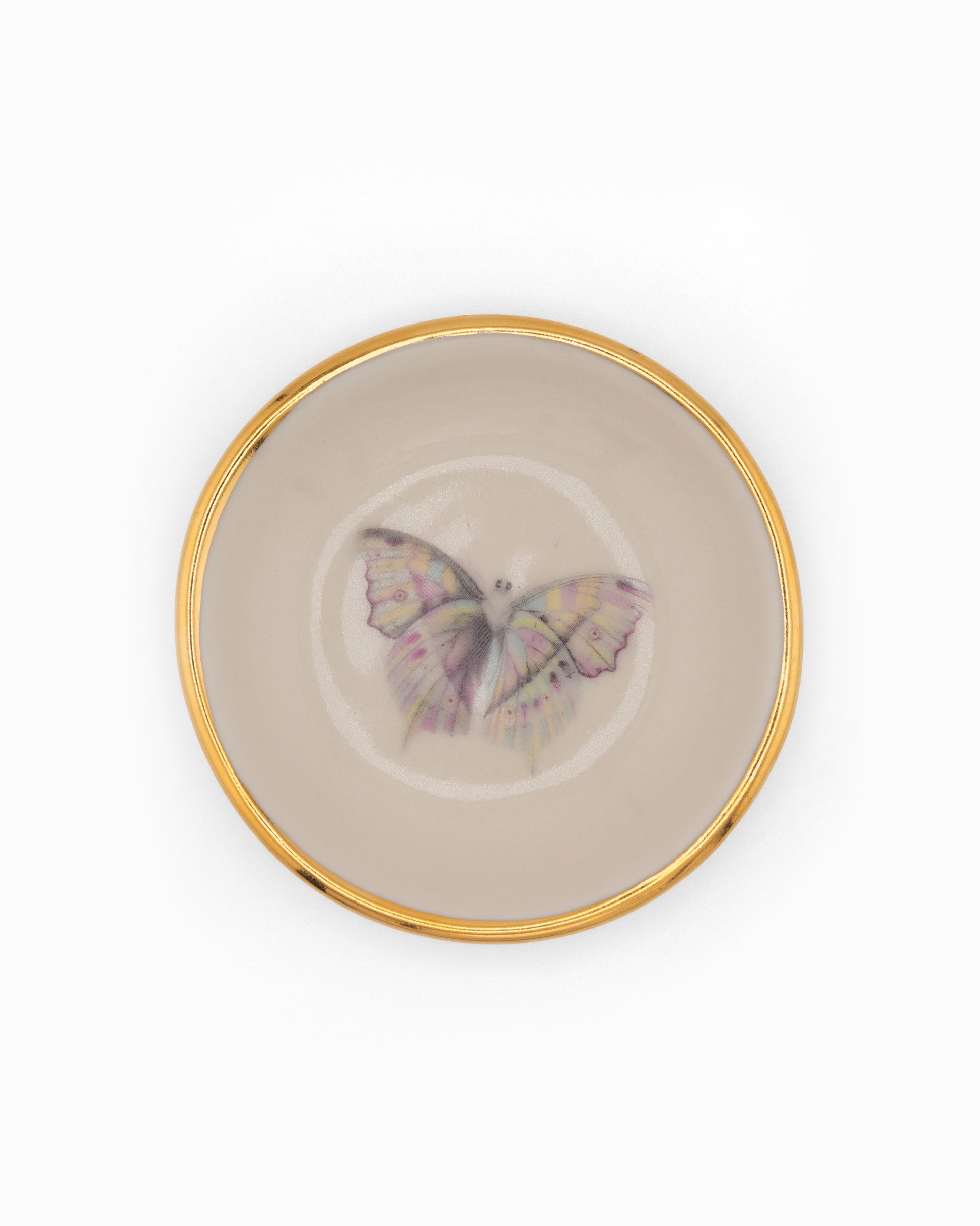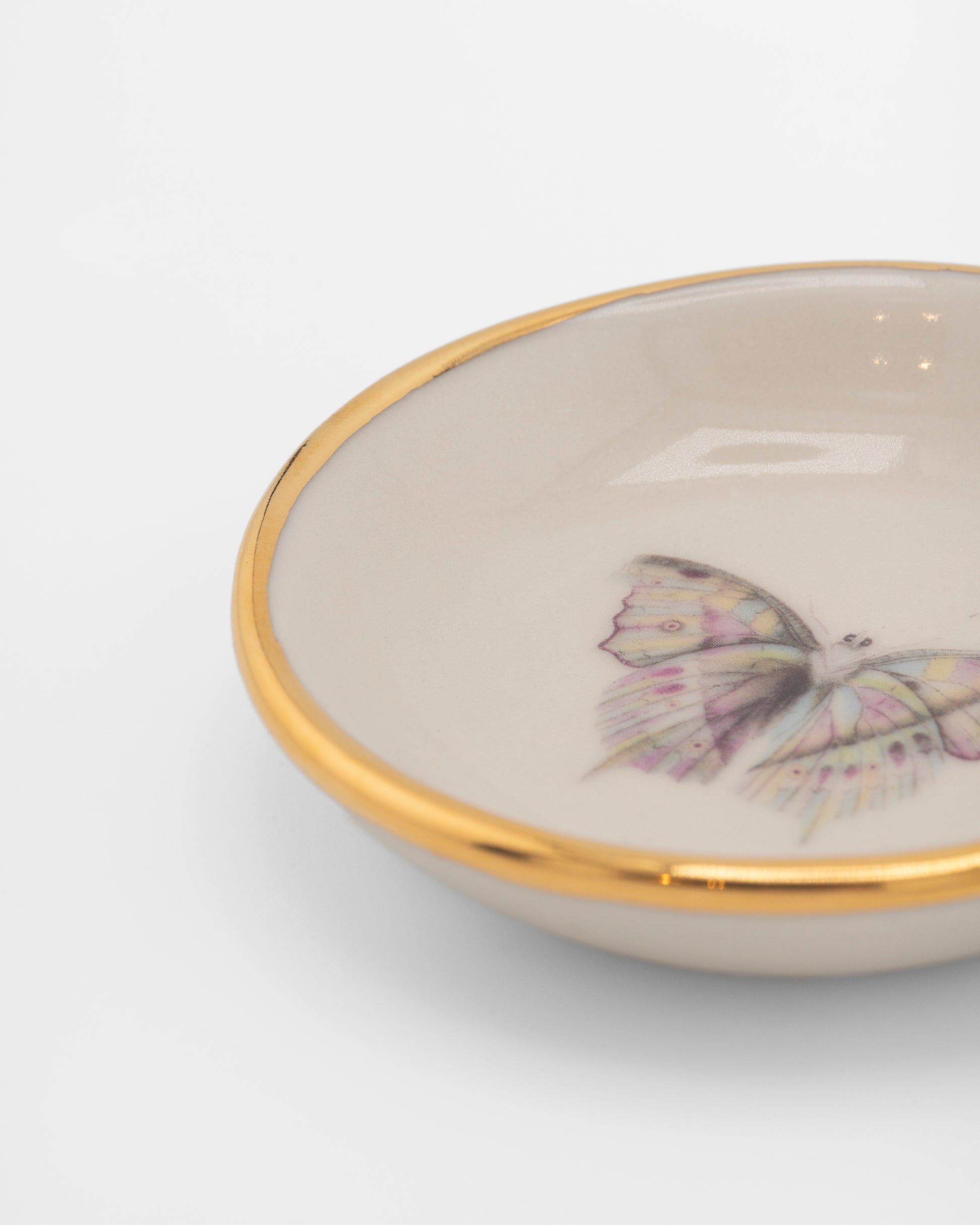 Pastel Butterfly Handmade Ring Dish with 22K Gold Trim at 3"